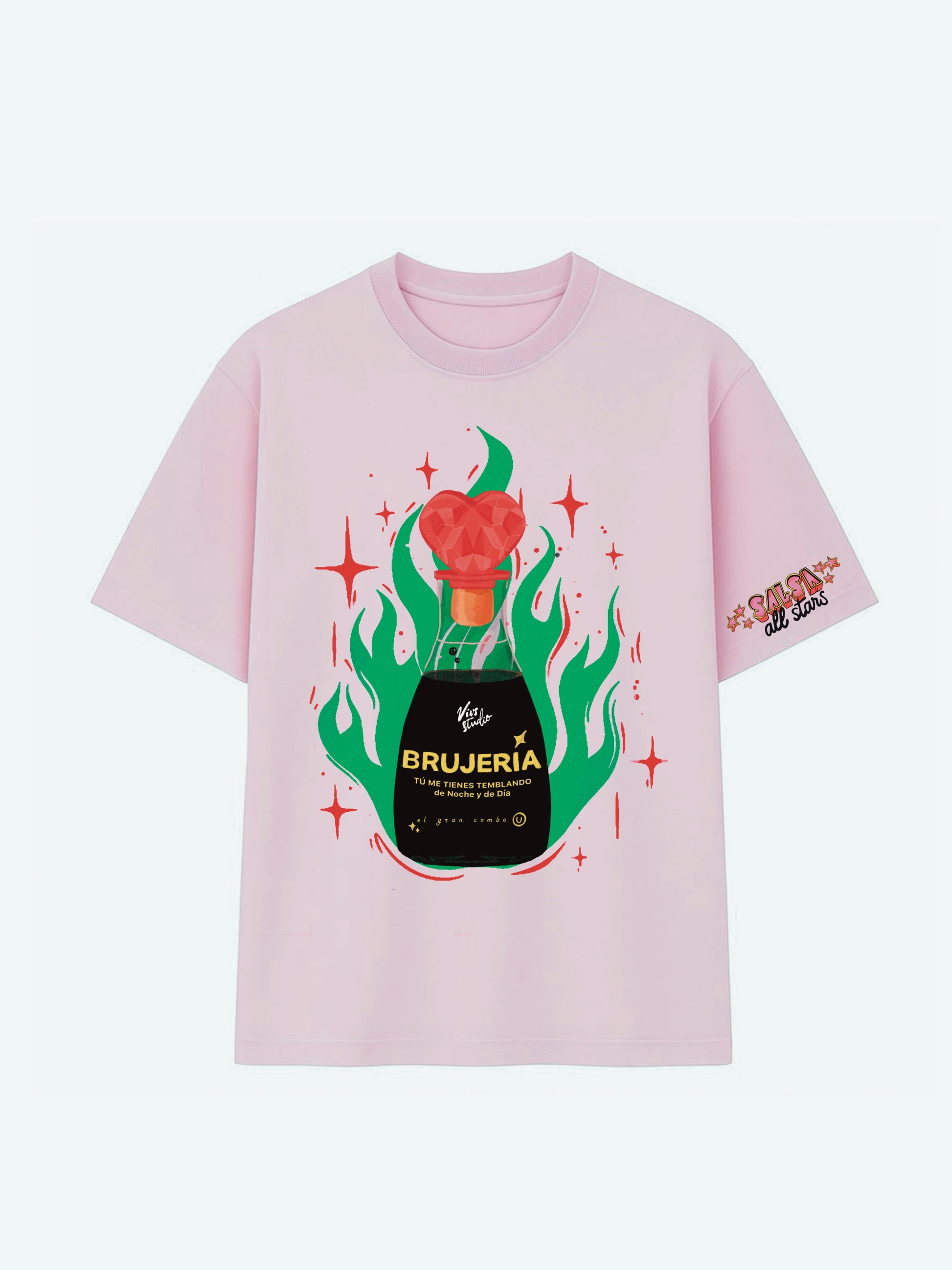 Nuestra camiseta brujería es salsita y es a a vez poción de amor. Disponible también color rojo.