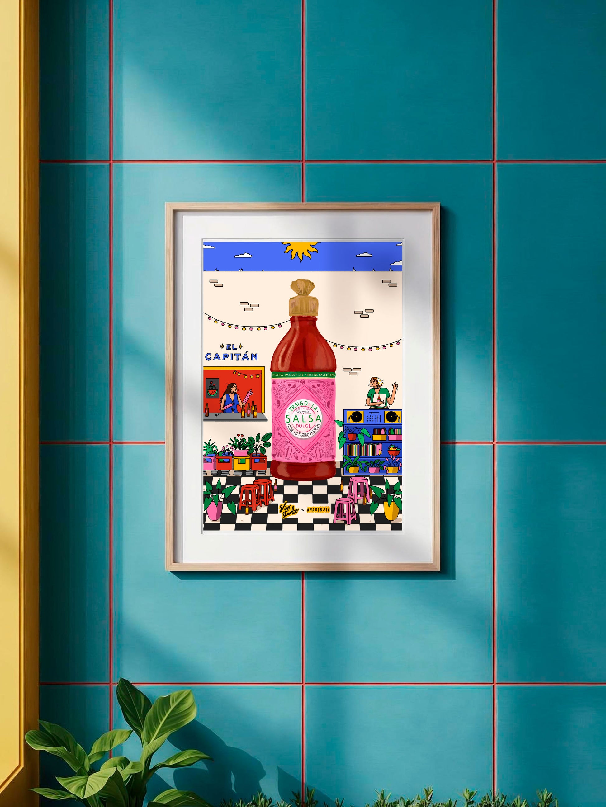 No somos capitanas, como dice la canción de Tony Pabón, pero somos dos chicas guaracheras y somos artistas y amigas. No necesitábamos nada mas para crear este print en colaboración. La salsa dulce la puso Vivs y el entorno colorido lleno de detalles lo puso Ana. Una pieza de colección infaltable por tiempo limitado.
