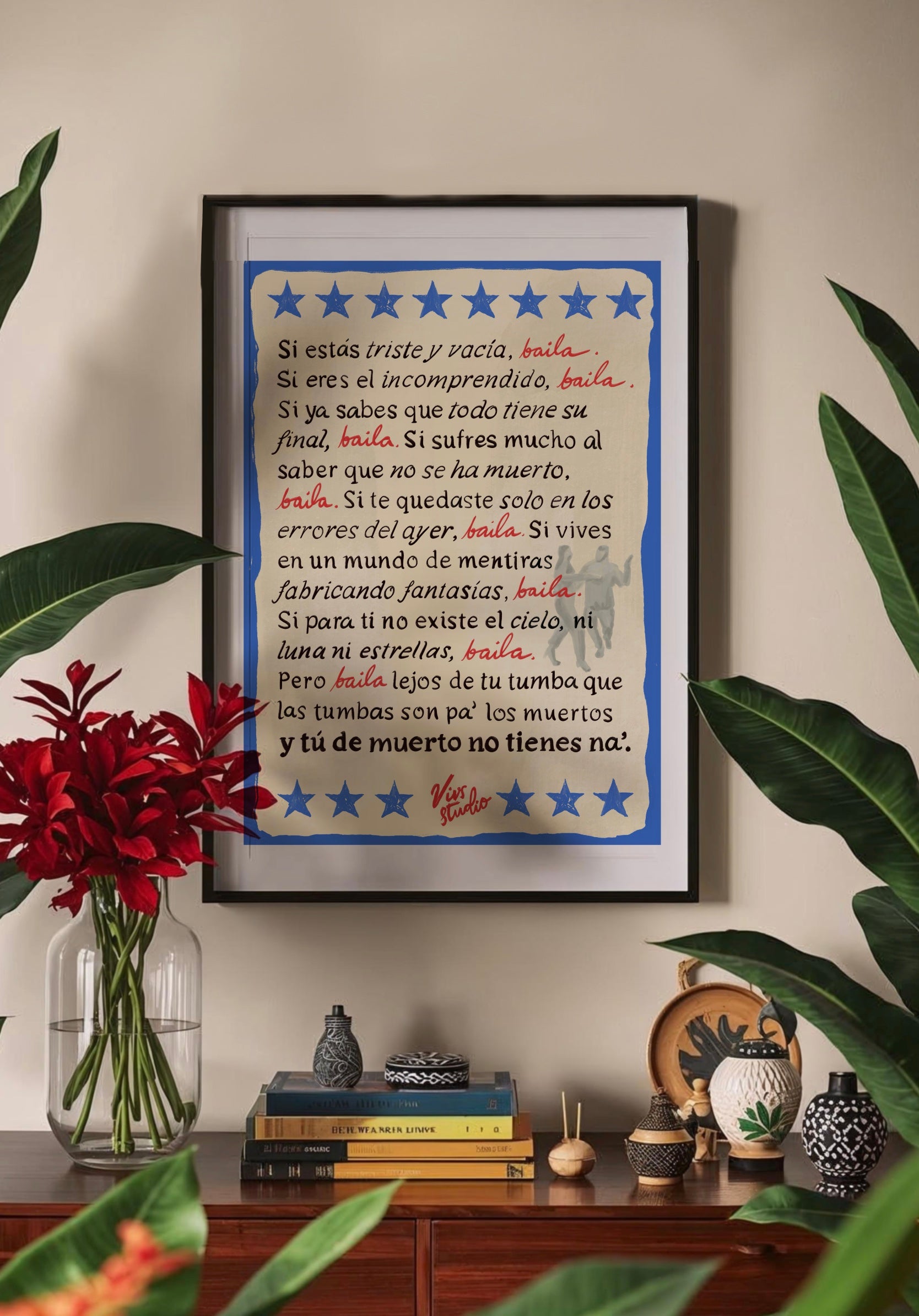 Pon a la gente a bailar y a pensar y a sentir y a brincar cuando vayan a tu casa con este póster impreso en papel de lino de 220 gramos.